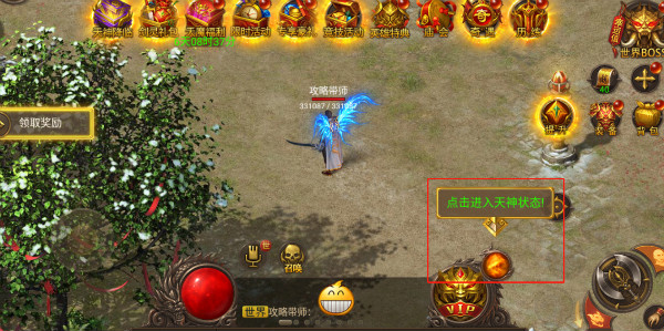 3、进入天神模式后,点击这边的技能按钮就可以释放你的天神技能了,酷炫外形+超高伤害,唔,真香~