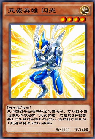 元素英雄本家陷阱,可以在回收墓地的元素英雄怪兽的同时破坏对方场上的怪兽,常在光2B卡组中配合【元素英雄 次新宇侠】,回收墓地中的次新宇侠并破坏对方场上1只1900攻击或以下的怪兽,非常的赚,缺点是只能回收元素英雄本家的通常怪兽,并且需要墓地资源的支持。