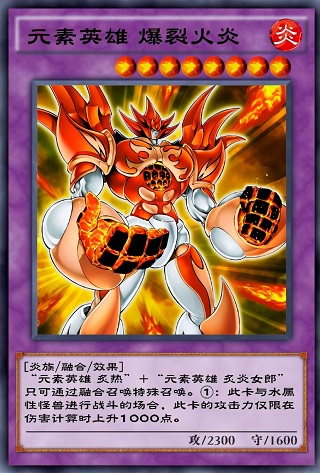 预组的封面怪兽,身材较差,但效果非常使用,1效果可以在召唤·特招成功的场合检索1张融合,2效果可以在从卡组精准堆墓1张元素英雄怪兽,并变成相同的属性攻击和守备力。