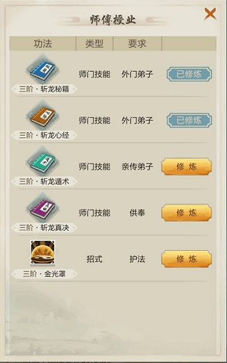其他的门派进入之后作为外门弟子可以领秘籍心经,如果有内门弟子的功法可以稍微挂一下领了就走。另外进入门派之后和门派的师徒打招呼,有些可以送礼物结识,之后就去道侣找他们吧。最后纳入双修也是不错的选择。