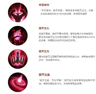 “毁灭之前,万众平等!”毁灭的力量在摩莉安血脉中流淌,使其伤害加深10%,攻击附带吸血效果。
