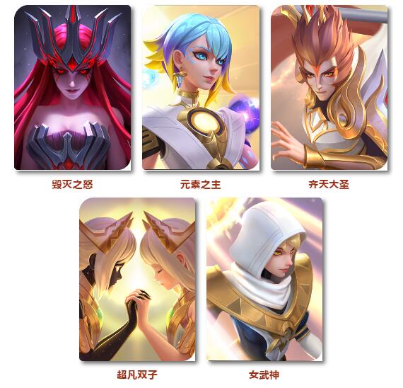 毁灭之怒、元素之主、齐天大圣、超凡双子、女武神