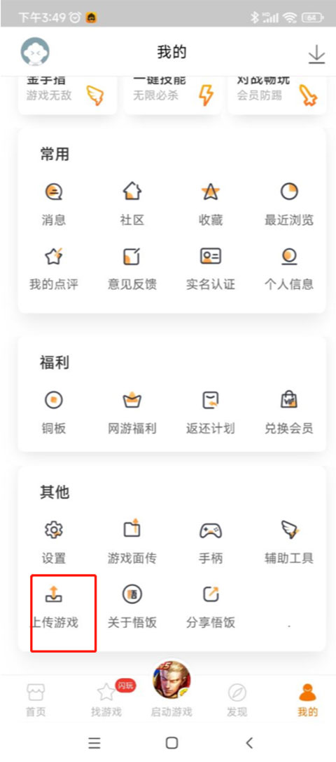 1、首先进入悟饭游戏厅主界面,点击下方我的。