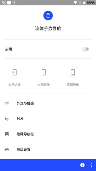 流体手势导航高级破解版,由大神“耗子”原创分享,已经解锁高级版全部功能,所有功能可以免费使用,例如个性化主题色彩、动画效果、侧边大小、声音提示等,有需要的朋友欢迎免费下载使用。