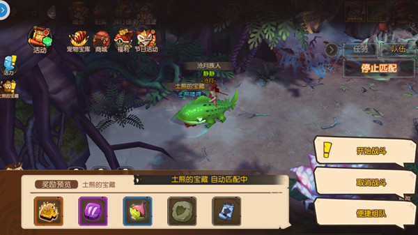 土熊的宝藏活动在玩家等级达到35级的时候开启,每日13/15/17/22时15分开启,每次开启会持续15分钟,既可以组队参加,也可单人参加,活动奖励为橙宠碎片和高级战宠技能和海螺券等,就这个活动等级而言,可以说是非常丰厚了。
