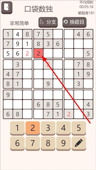 2、打开传统数独模式,将题目下方的数字填写进空格中,也可点击上方换题目降低数独难度;
