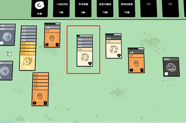 1、在游戏中房子的制作方式为两张木头卡牌加一张石头卡牌加一张村民卡牌,玩家将这些集齐后叠放在一起,等待进度条结束,