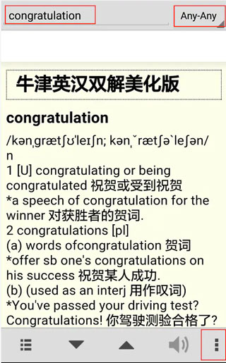 2、纯正发音:单词、例句支持美音、英音自由切换,带您领略地道英语。