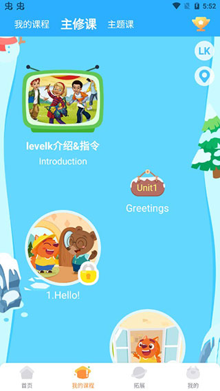 3、进入软件首页,点击我的课程,孩子就可以开始学习了;